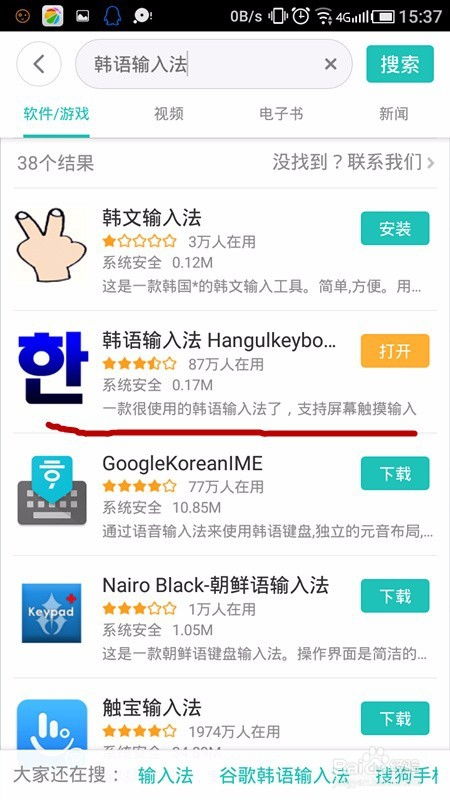 3. 在搜索结果中找到你喜欢的韩文输入法,点击下载。