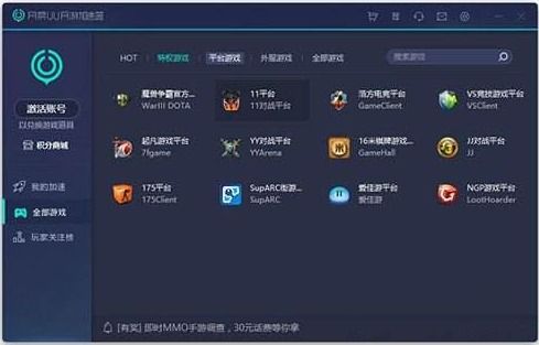 2. 选择游戏:打开客户端,选择你想要玩的游戏,然后点击“加速”。