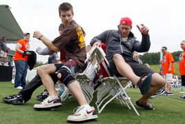 4. 音乐突然停止,大家要迅速找到凳子坐下。